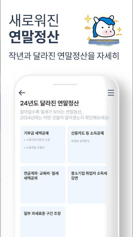 Google Play 또는 Apple App Store에서 연말정산 2024 어플을 다운로드합니다.